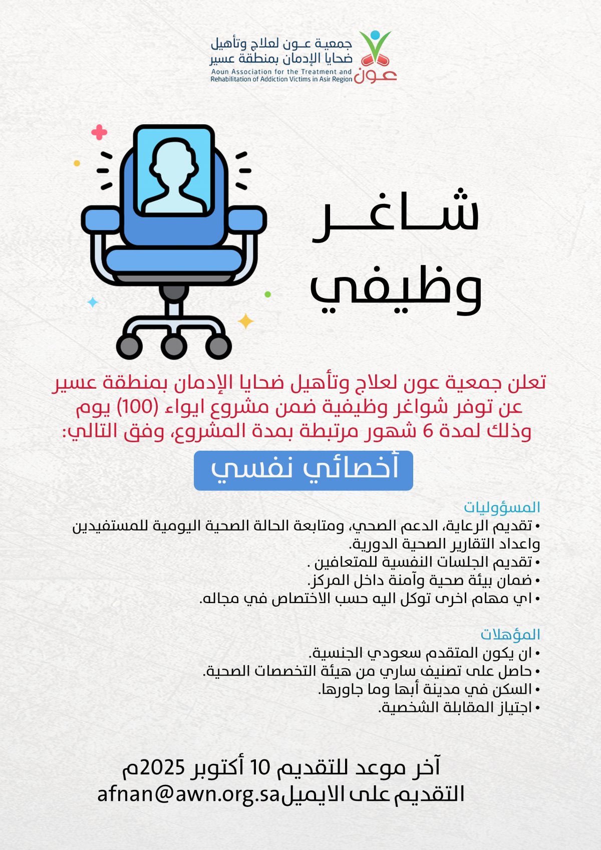 جمعية عون لتأهيل وعلاج مدمني المخدرات بمنطقة عسير